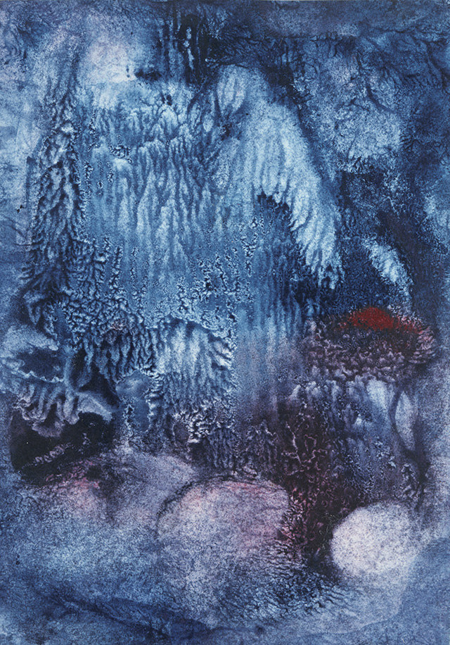 自分が物心ついた頃には、すでに古くさくなっていた技法ですが、誰にでも面白いイメージを生み出すことができるものです。瀧口修造やその影響下でデカルコマニーの表現を現在まで追求している加納光於の作品を観て、自分でも試作したことがありますが、数点作って、デカルコマニーを使うのはやめてしまいました。その偶然の中から色や形を取り出すには、まだ若すぎたのでしょう。