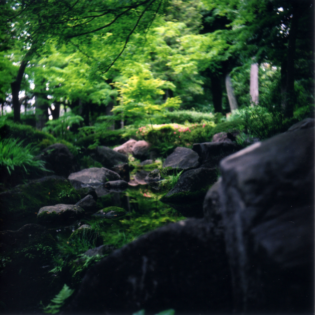 二眼レフを分解する」の続き。合皮を100円ショップで手に入れ、前面のレザーを張り替える。さすがに安っぽいが、仮のつもりなので、これで良しとする。写真を撮りに多摩川へ行った。羽村から拝島まで、川沿いを歩きながら、カラーフィルムで景色を撮影し、帰り道でカメラ屋に現像を出した。出来上がってきたものは、トイカメラよりぼやけている。これはこれで面白いというレベルのものではない。原因に思い当たることがあった。レンズを外してクリーニングした後、戻すときに表裏を逆にしてしまったのではないか。ボンドで貼ったレザーを慎重にはがして、再度分解してレンズの向きを変える。差しすぎた油が滲んできていたので、シャッター部分を洗い流すよう、ベンジンをかけて乾かし、組み立て直した。こうなると早く確認したくなる。次の日に近所の公園に行って、試し撮りをした。まともなカメラに戻ったが、ピントや露出など、技術的な課題が山積している。